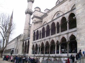 Below the magnificent domes, thousands of tourists click their cameras. It’s all to easy to forget that this is still very much a living and working mosque. To the sides of the main building, women gather for silent prayer.