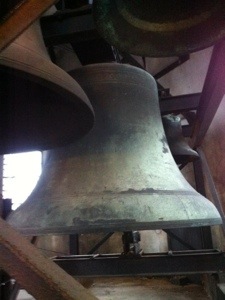 For the purposes of creative broadcasting, I’m allowed to stand inside the bell and give it a tap. And then, up another spiral staircase to the inside of the clock itself.