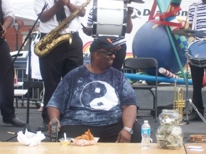 Half an hour late, the New Orleans team turn up. They look under prepared. And they are. There was a communication problem and these guys volunteered at the last minute. There follows a frantic three minutes of intense eating, until Brian Schindler from Jefferson Parish is declared the winner, having stuffed ten Beignets down first. At least two local TV crews are here. This is big news.