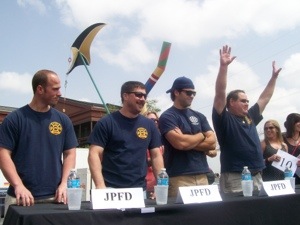 “We entered this contest last year and we beat them hands down” says the guy from the Jefferson Parish Fire Department.. Yet this isn’t a feat of physical strength or rescue skills. It’s a Beignet eating contests. These local delicacies are like doughnuts. – sugar covered and full of calories. It turns out that the contest used to be between the New Orleans Fire and Police Departments. But in 2012 the cops didn’t show up. Maybe they only do doughnuts.