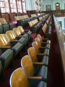 In odd-numbered years, the State Legislative bodies meet for the first part of the year. And the House of Representatives is in session, so I take a seat in the busy public gallery.