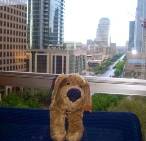 Fortunately for me, downtown Austin is fairly compact, so there’s no need for a car. Although from the eleventh floor of my hotel, it seems typically Texan. Huge. Even NewsMutt is impressed.