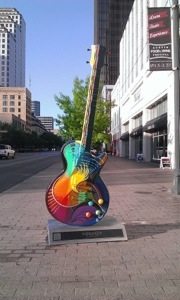 As soon as I step out onto Congress Street, I can feel the heat. At 7pm it’s still about 20 degrees, and pretty humid. At first the city seems quiet – but it’s Easter Sunday, so many people will probably be at home. It’s a stark contrast to two weeks earlier, when Austin’s biggest music event – South by Southwest – was in town. Someone even left their guitar behind