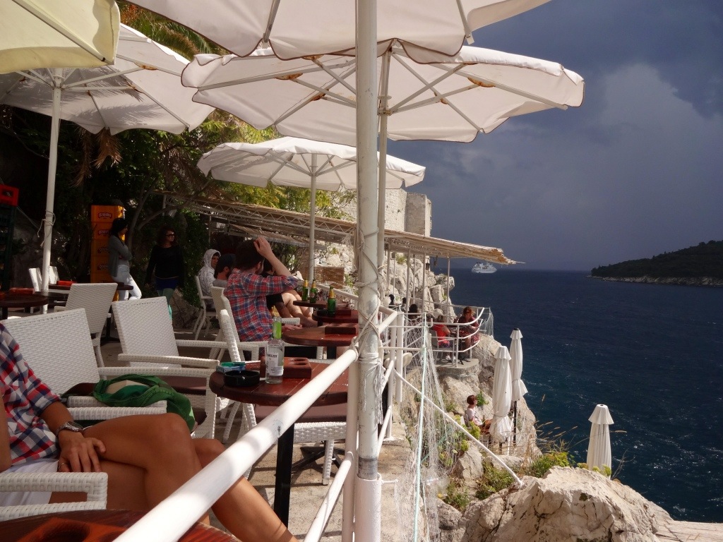 As a general rule of thumb, the more central an eatery is to a famous site, the more expensive it gets. And Dubrovnik is no different, although you can also add to that painfully slow service and painfully loud Spanish tourists sitting next to you. To be honest, I only chose the undercover outdoor seating area because something has arrived that I didn’t order – heavy rain.