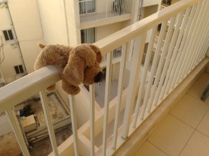 For those wondering, NewsMutt is currently showing his rear end to two other dogs on a balcony below. Typical. Although he’s also been checking out the safety arrangements in our luxury kitchenette.