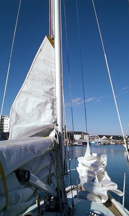 As far as my hands on goes, I spend a good few minutes dodging Adrian and Penny as they dart around in all directions, feeding and pulling ropes, tying the sails into position, as casually as you like.