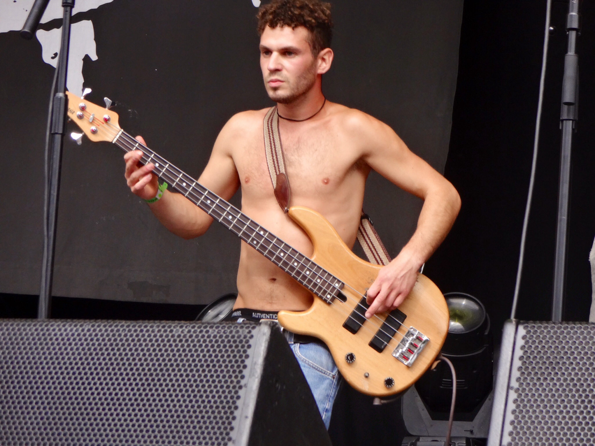 Plymouth based Land of the Giants are among the early acts on the main stage. And they’ve earned their place here, having already played Glastonbury as well as a host of smaller gigs across the region. They have an infectious, raucous and often smutty sound (turn the subtitles off if you have young children) – but are just what’s required to get the crowd in full party mode. And – just to show their rebellious side, SOME OF THEM TAKE THEIR SHIRTS OFF. Rock and roll.