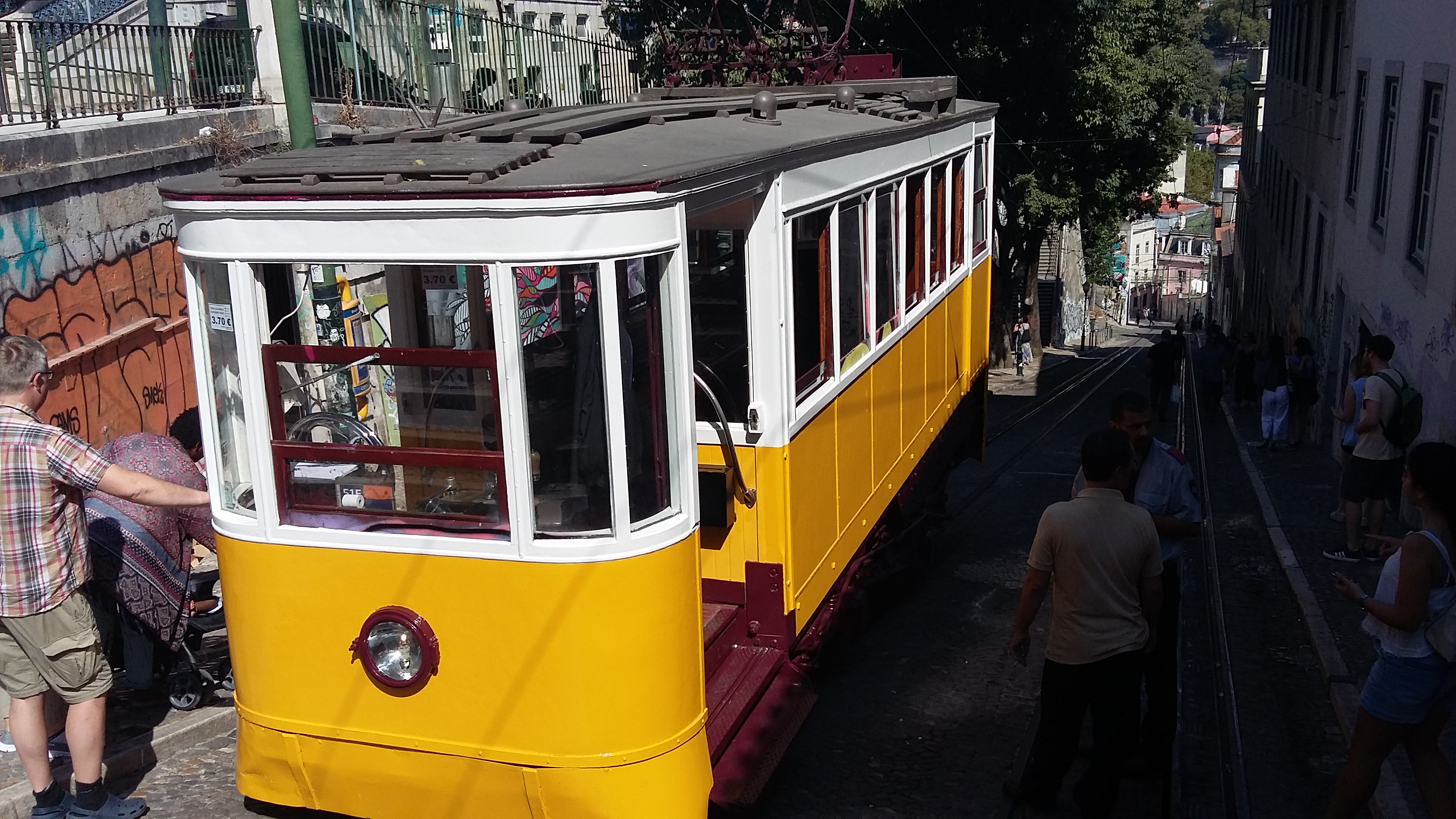 This is the Elavador de Gloria – transporting weary tourists and locals to the Bairro Alto (High Town) for over a hundred years. It officially takes about twenty passengers at a time, though if you’re brave enough to stand and can squeeze yourself in, the driver won’t turn you away. It’s one of three sets of funiculars climbing some of the steepest inclines in the city. Best of all, it’s run publicly, so travel passes and tourist cards get you a ride for free.