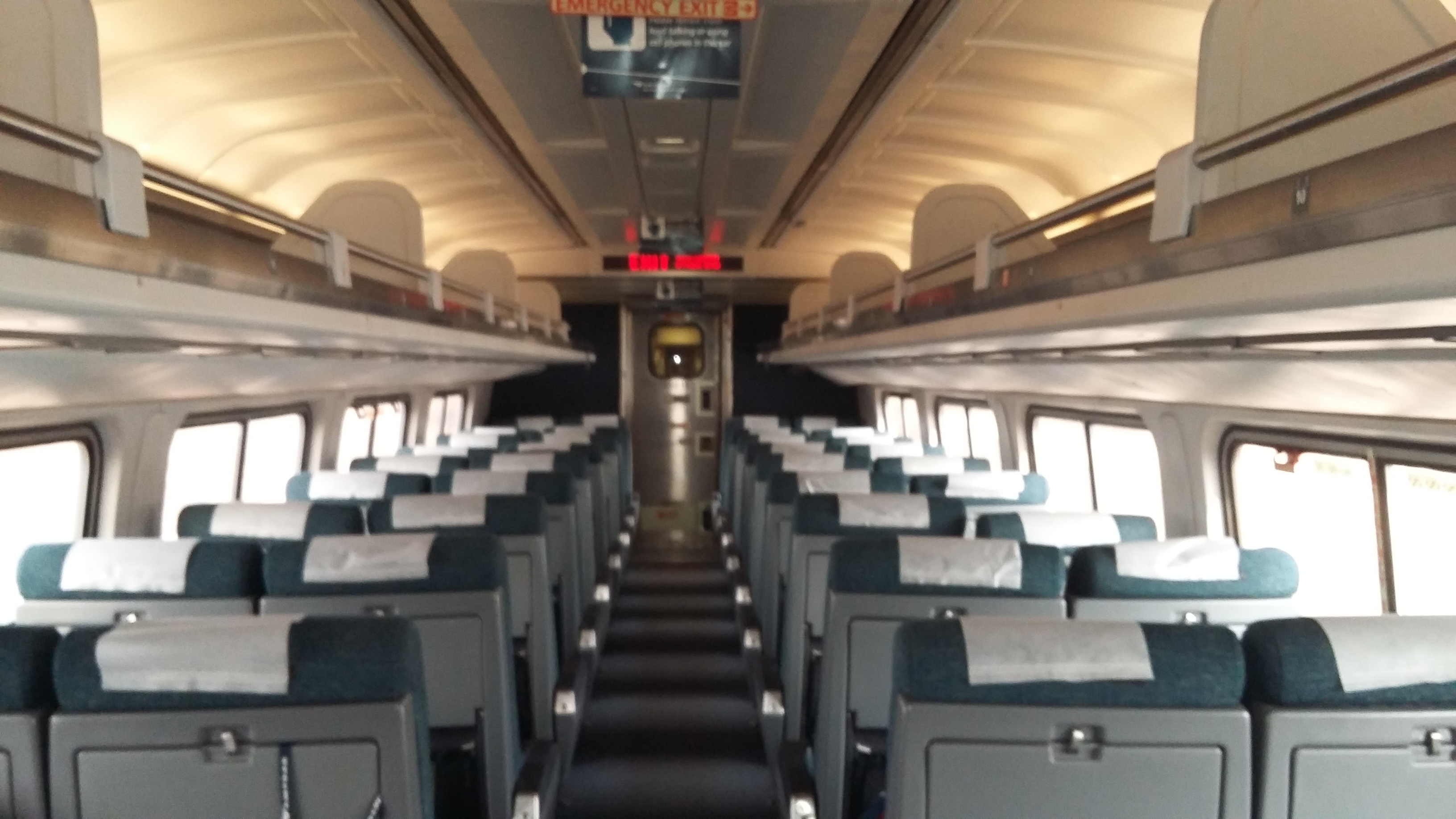 “Come and see me if you will need help getting to they train,” announces Cynthia, the Amtrak host in the waiting room.