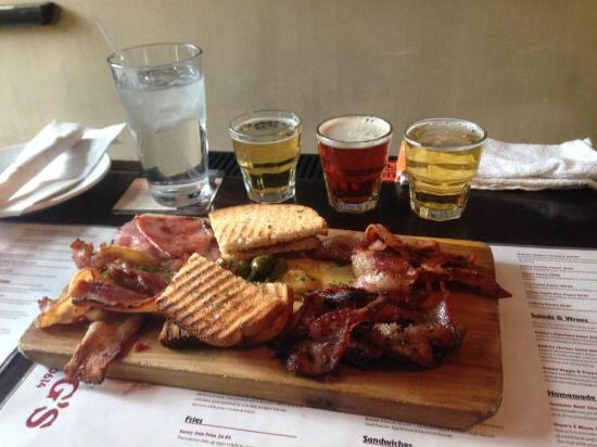 All of this walking and history makes you hungry. So, continuing my celebration of all things European, a train ride takes me to the Lincoln Park district and Paddy Long’s pub. Many establishments have built up a reputation of holding special events where food and drink are paired. Cheese and Wine being the most obvious example. But if you’re coming to Paddy’s, don’t expect your vegan friends to be impressed – because here it all about beer and bacon. Lots of it.