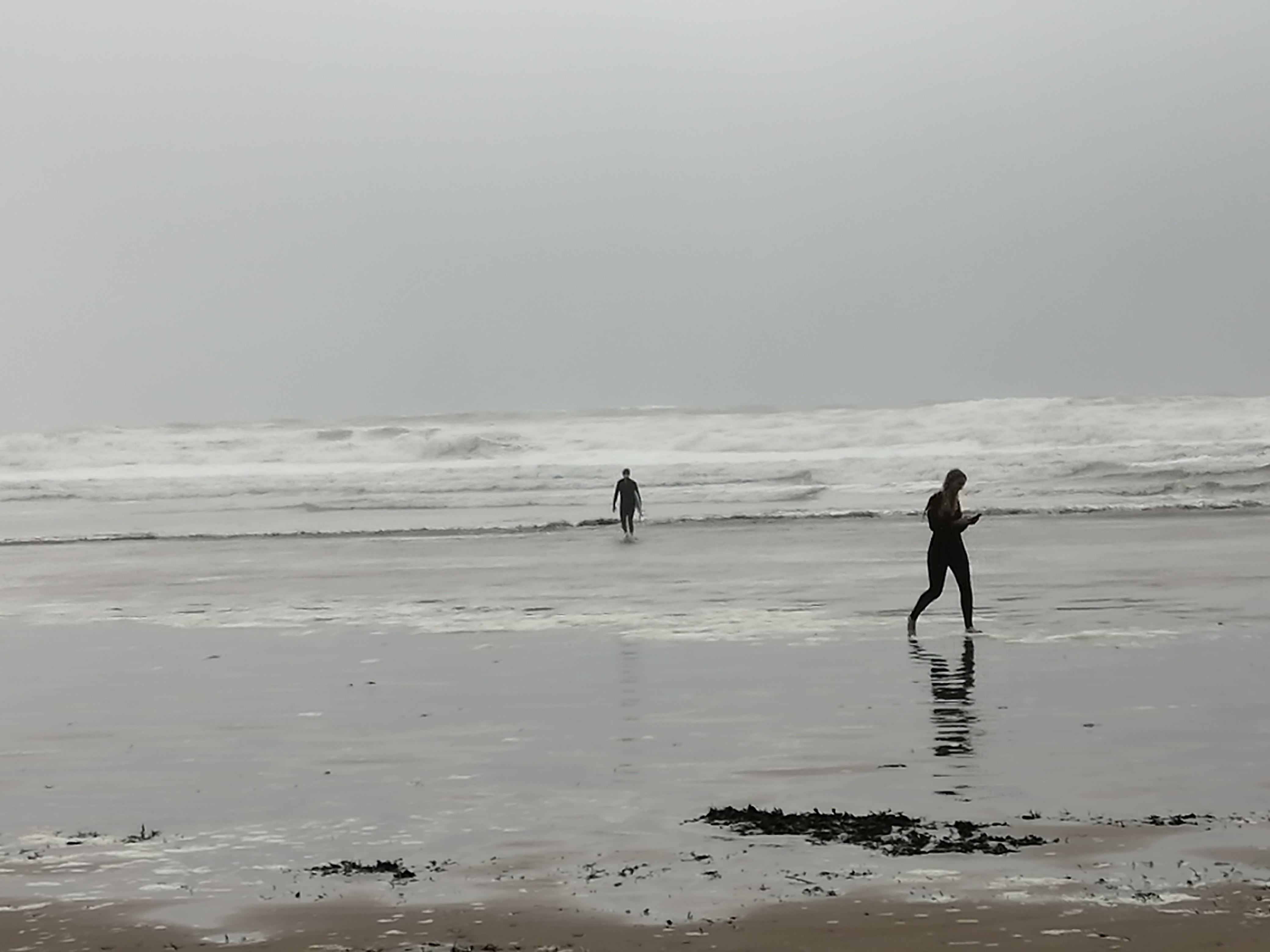 Places like Foley’s rely on passing trade, so a bunch of students isn’t and issue. And even today – with the rain still coming down – a couple of brave surfers are on the unspeakably gorgeous Inch Beach.