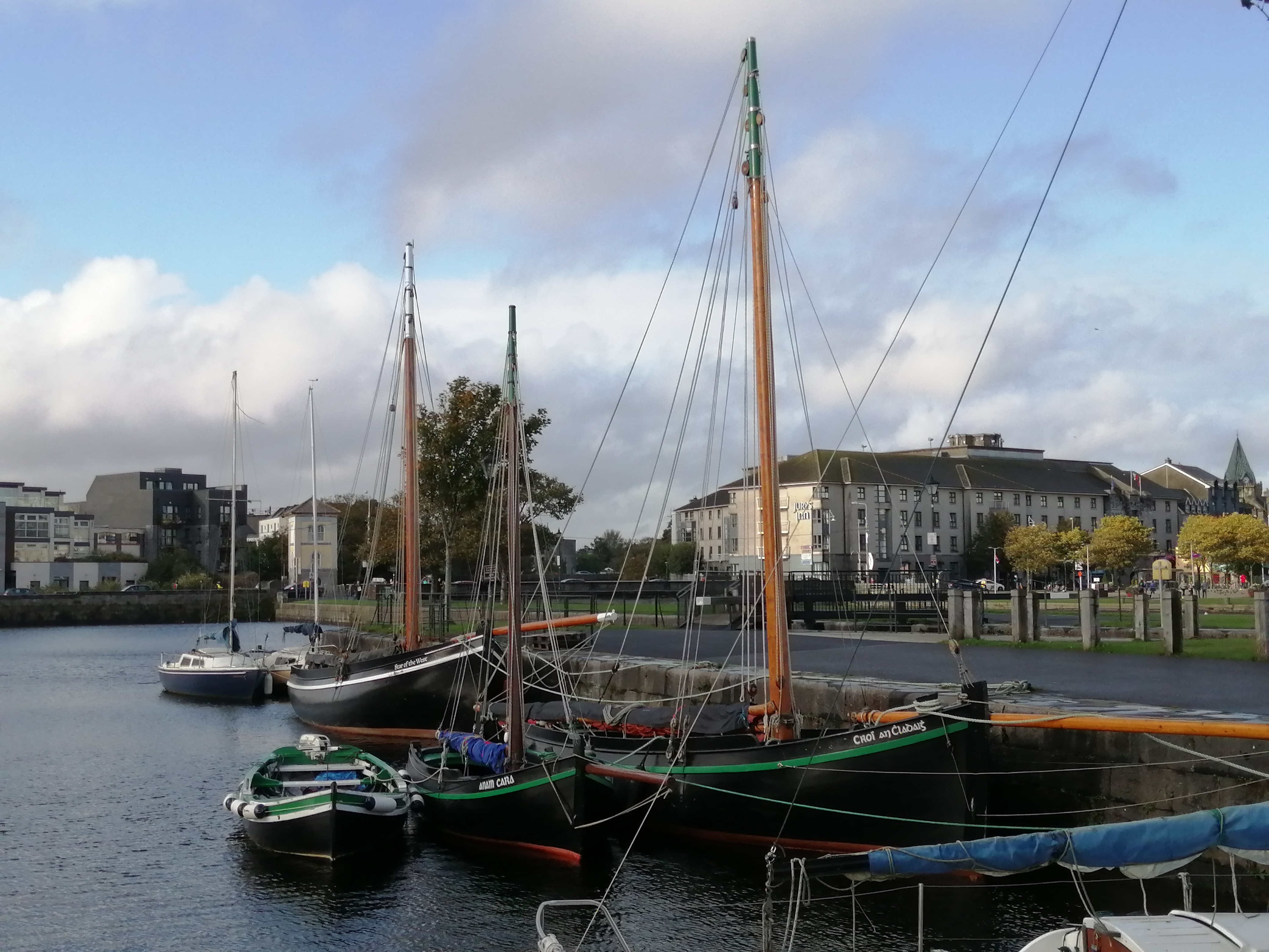 The peat itself was often transported along the coast by distinctive Galway Hookers. And before you laugh at the back of the class, these sailing boats also known as pucans and gleotogs were once a powerhouse of transportation. At, at last, as the sun breaks out in the evening, two are moored up in the inner harbour.
