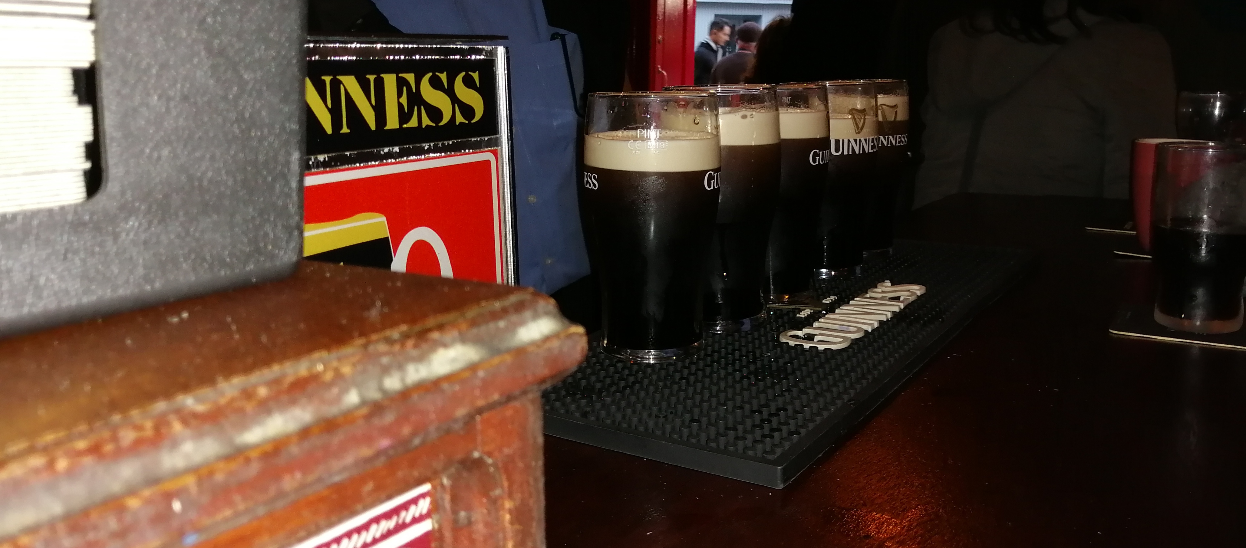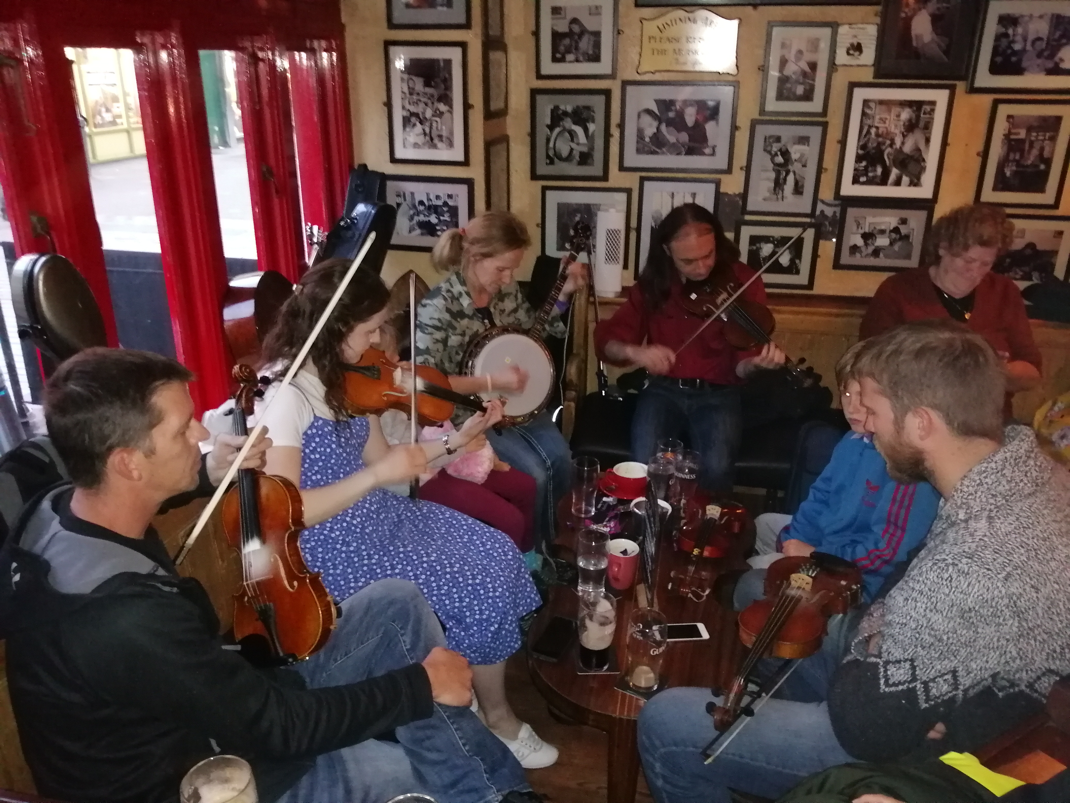 The small boy and his sister (hidden between the banjo and the fiddle) also play instruments as part of the set. And they’re evidently brought up in the cultural tradition, adding their own orders for drinks and snacks when the bar tender comes round.
