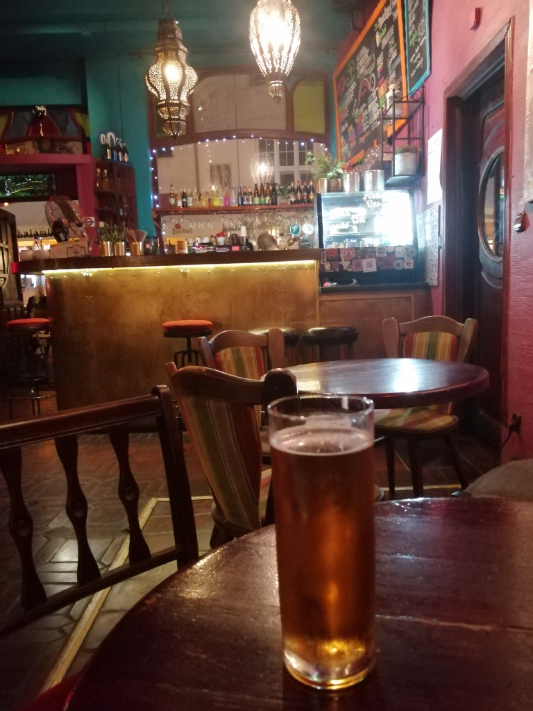 The vibe is bohemian, and the music improvised. Well after 11pm, more musicians turn up and soon there’s a whole band playing to what mainly look like their friends. A girl in the audience suddenly grabs a microphone and works through some made up lyrics, blues style.