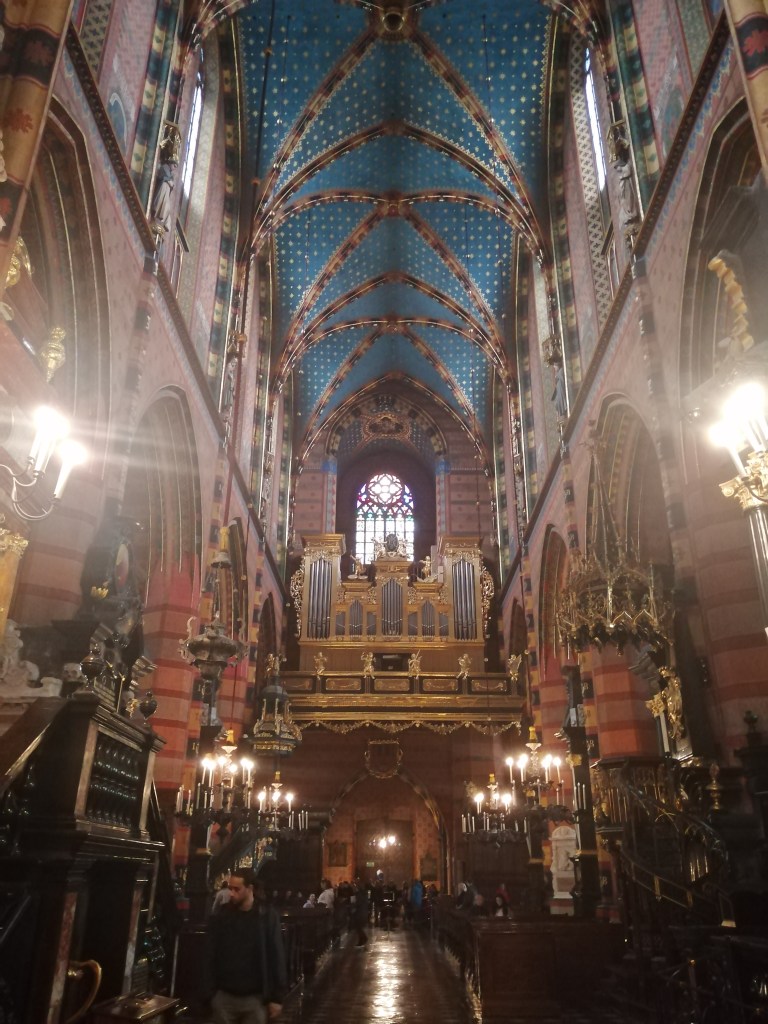 It’s still raining as I emerge from the depths, so instead of more exercise I decide to cleanse my soul with a visit to St Mary’s Basilica, the huge church that dominates the Old Town. There are two entrances; one for those who just which to pray, which is free, and another for the tourists, which involves a £3 “donation”. Now I know it’s not much, and I don’t mind paying, but surely a donation should be voluntary?