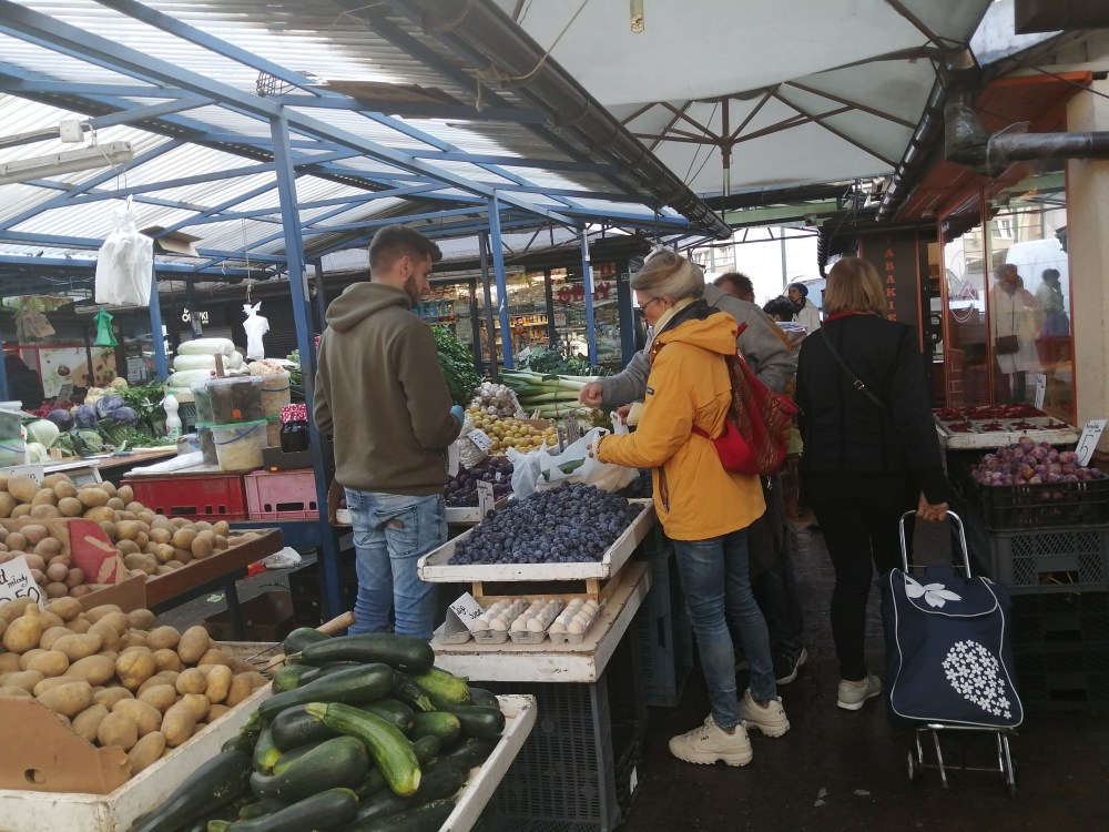 It’s my final day in Poland, so just enough time to head beyond the Old Town and check out another market. The Stary Kleparz is Krakow’s oldest continuously operating market, having existed since the mid fourteenth century. On a chilly Monday morning, it’s mainly a local crowd seeking out the best bargains for fresh meat, fruit, veg and flowers. Although technically a “covered market”, there’s no grand, historic hall here; everything is open to the elements.