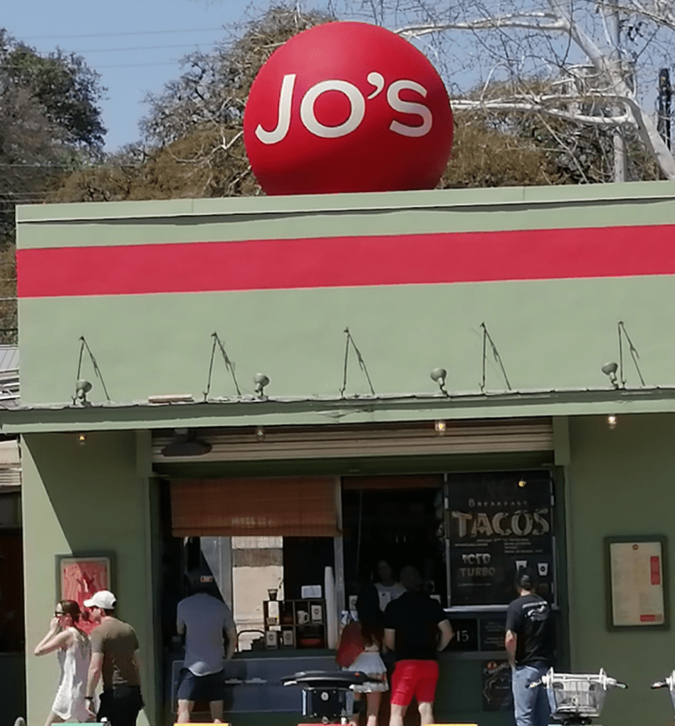 It’s a sunny Sunday morning, and my E-Scooter takes me over the Colorado River to SoCo – the district known as SoCo – “South Congress Street. The river itself has a pleasant array of green spaces, full of fitness fanatics either running or cycling, or simply people walking their dogs. On the main drag of SoCo is a large strip of independent shops. Many of these are high end clothing stores or restaurants where you imagine the latest reality show of Austin’s Beautiful People being made. But there’s also the quirky and friendly, like Jo’s.