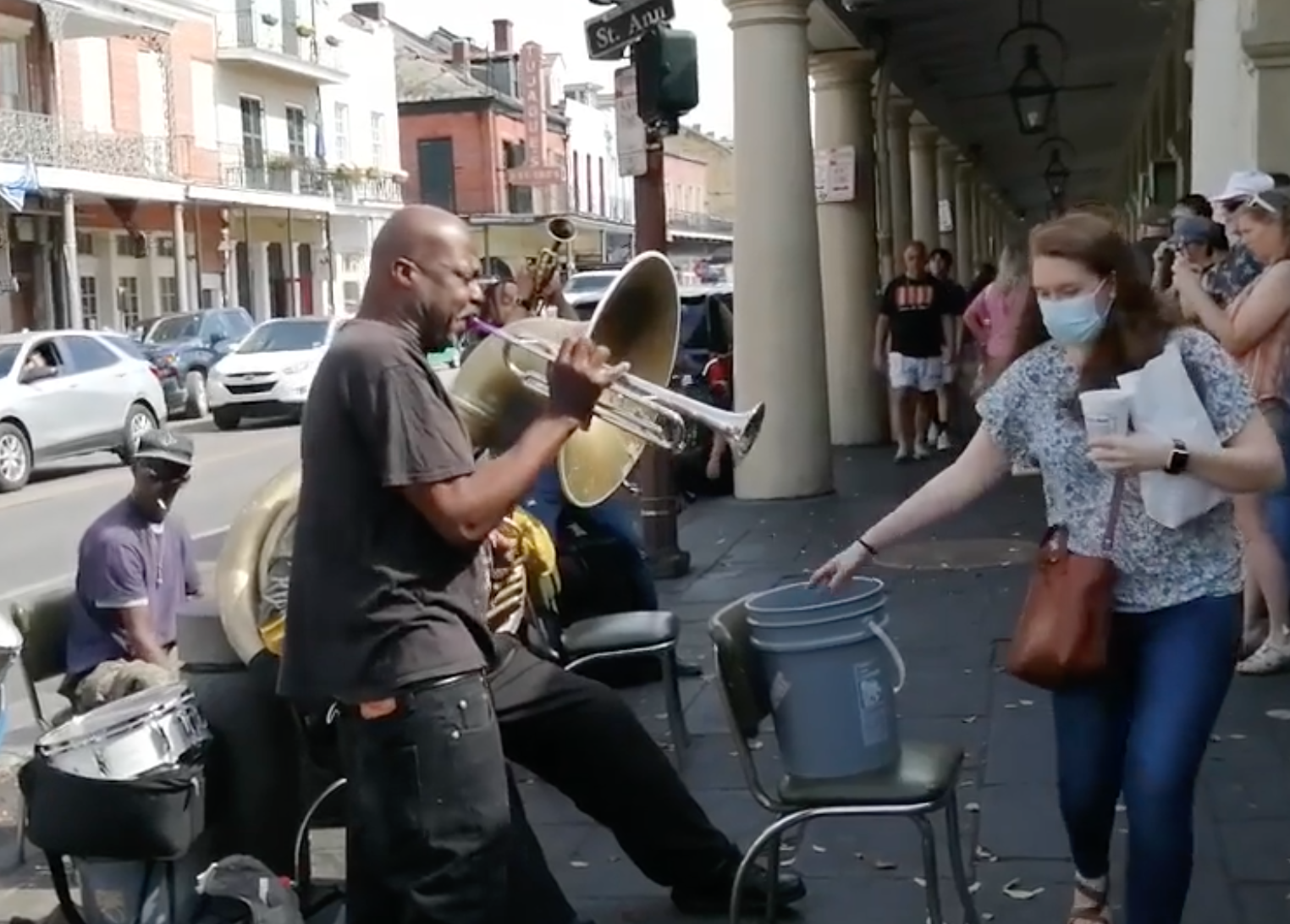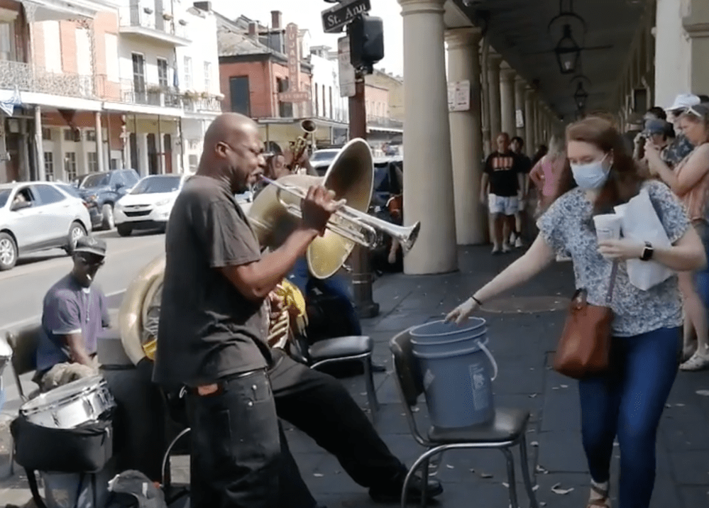 In New Orleans, a long queue means one thing. An opportunity. The captive audience is treated to some brilliant music from these guys. I can’t say for certain, but I think they’re the same group I saw here ten years ago – there’s always a four piece band hanging around this part of town.