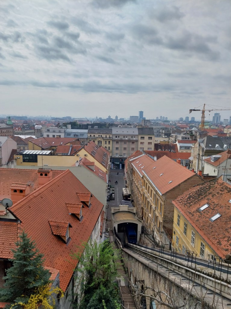 Sunday morning starts with a gloomy blanket of cloud across Zagreb. But the day soon warms up after a trip up the funicular to Gornji Grad, the Upper Town. The fare of 70 cents is ridcuolously cheap (an all day tram ticket here comes in at less than €4) and provide views across the city.
