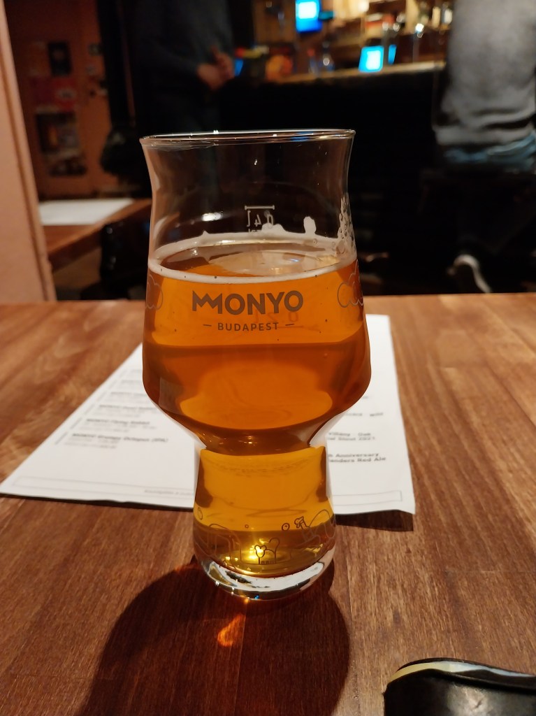 My first evening is also about meeting some friends from back home in Nottingham. Pete and John are coincidentally in town for a holiday so we mark the occasion with a few craft beers. There’s no shortage of choice – Budpaest is renowned for its brewing over the centuries, and today there are dozens of bars selling their own beers. Monyo, close to the Elizabeth Bridge, is as good as any.