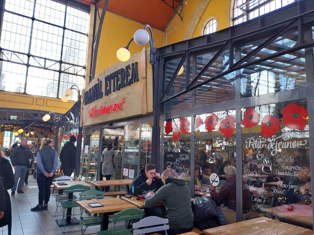There’s not enough time to look at tractors, or whatever else happens to be in the agricultural museu – but there is time for lunch. One of the cheapest places to eat is the Budapest Central Market – a vast hall selling fresh meat, fruit and veg, and a million different Hungarian souvenirs. On the top floor a series of stalls and a restaurant offer great value and tasty food. They may still be quite touristy, but they’re a world away from some of the city’s high end eateries.