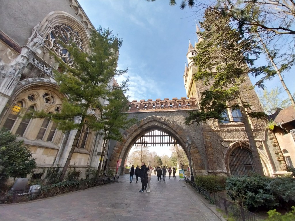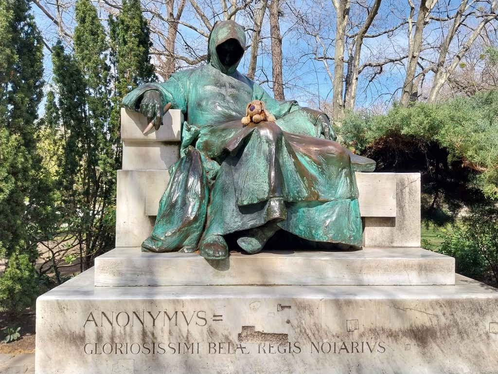 Equally inviting is the adjacent City Park. Acres of green space are blended with noteable buildings. Once again my old friend “construction works” means I can’t get inside the Jaki Chapel – but I can enjoy the gatehouse that leads to it and the Hungarian Musem of Agriculture. And NewsMutt makes an anonymous friend…