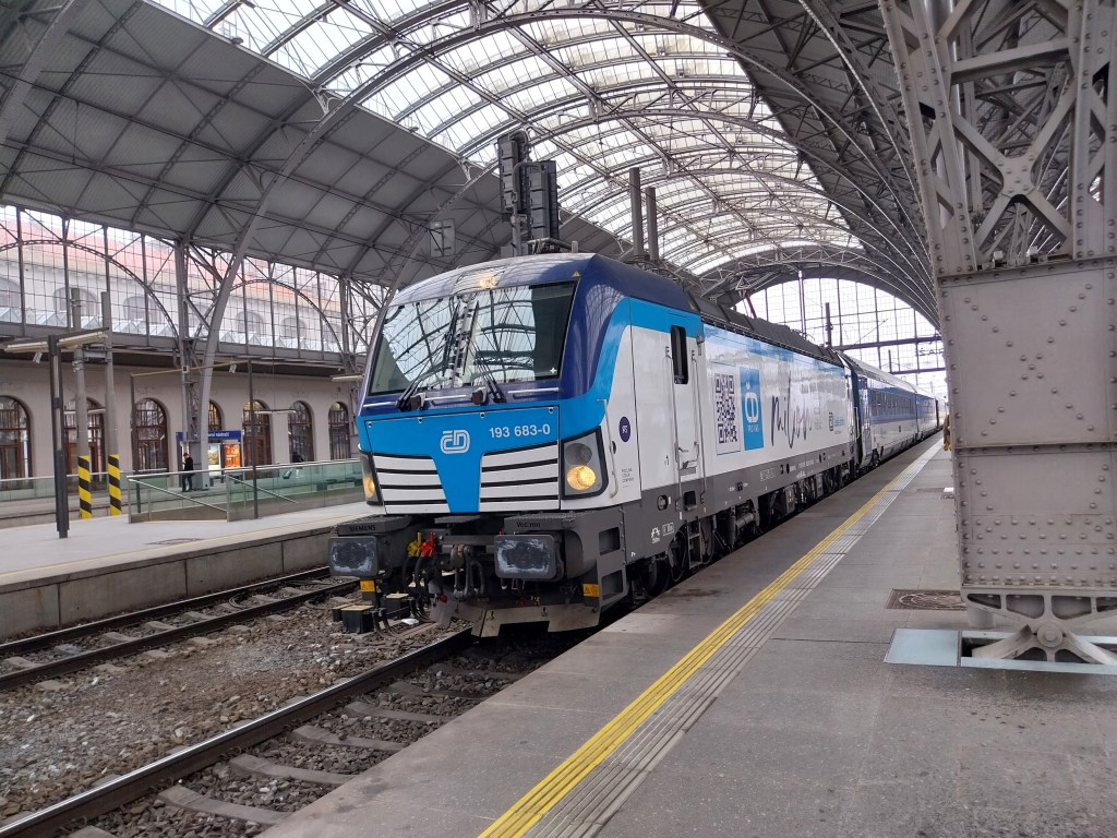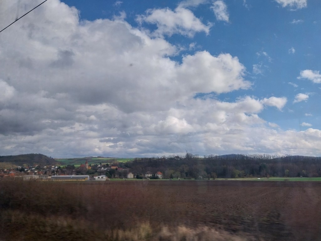 The Ceske Drahy service was waiting at the platform well ahead of its scheduled departure time. But then came an announcement of a twenty minute delay “due to a technical fault on the line”, which covers just about every eventuality. Twenty minutes became thirty, and once we did depart there were frequent stops in the middle of nowhere.