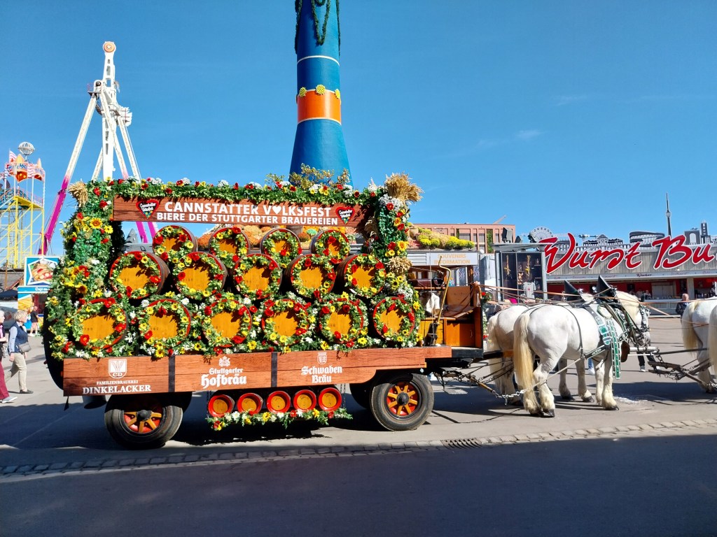 Stuttgart had been badly hit by the Napoleonic wars, so the region’s King at the time hatched a plot to drum up trade. He ordered an agricultural show to show off the very best produce, beer of course being a big part of it. The tradition continues today, with a special beer brewed for the event each year. Like UK beer festivals, the beer halls are run on a token system. And there are plenty of nods to the past, though you’re not supposed to touch them.
