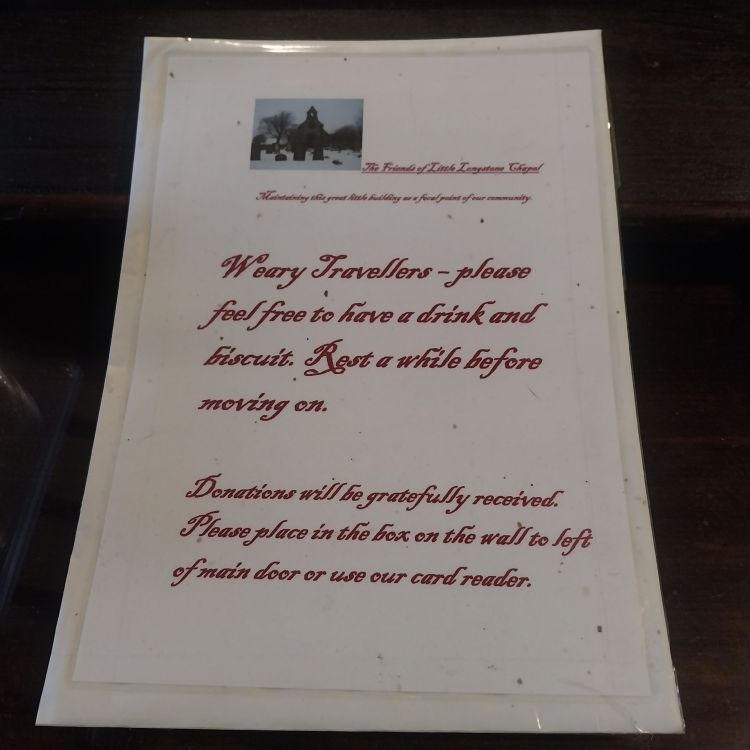 This is the remarkably pretty Little Longstone Congregational Chapel is as tiny as the village it serves. The Grade 2 listed building sits just across the road from Monsal Head, and had I been driving or in a hurry I’d have missed it. The interior is lovingly kept by volunteers, and there’s even a kettle with tea and coffee for “weary travellers”. They’re not just in it for kindness, though – next to the kettle is an electronic payment device which accepts credit card donations. God may well move in mysterious ways but he still has overheads to consider.