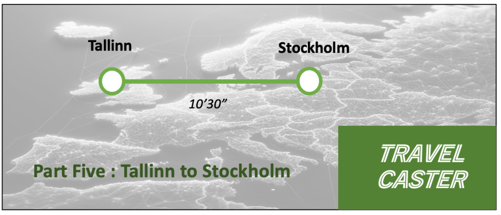 By ferry : Tallinki Silja Line runs services between Tallin and Stockholm every other day (one going to Stockholm, the next back to Tallinn). At 2024 prices, a Class A Cabin cost about 160 Euro, with 19 Euro more for breakfast. You can do it for less with an inside cabin or (not to be recommended) just crash out on a seat on board the ship. Alternatively Viking Line also runs services between Tallinn and Stockholm.