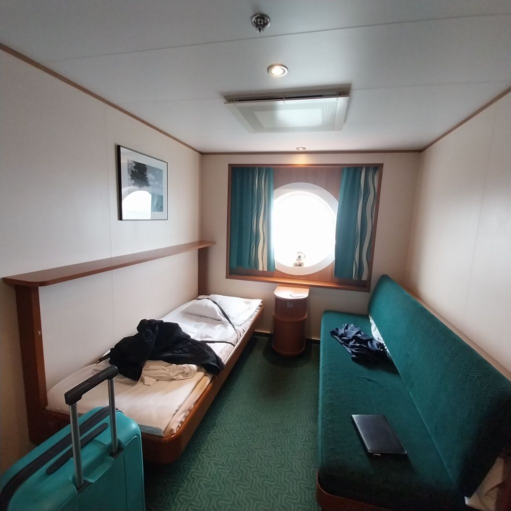 Check in was extremely easy as a foot passenger, and the cabin was indeed a sensible choice, with a decent bed, a sofa and a view.