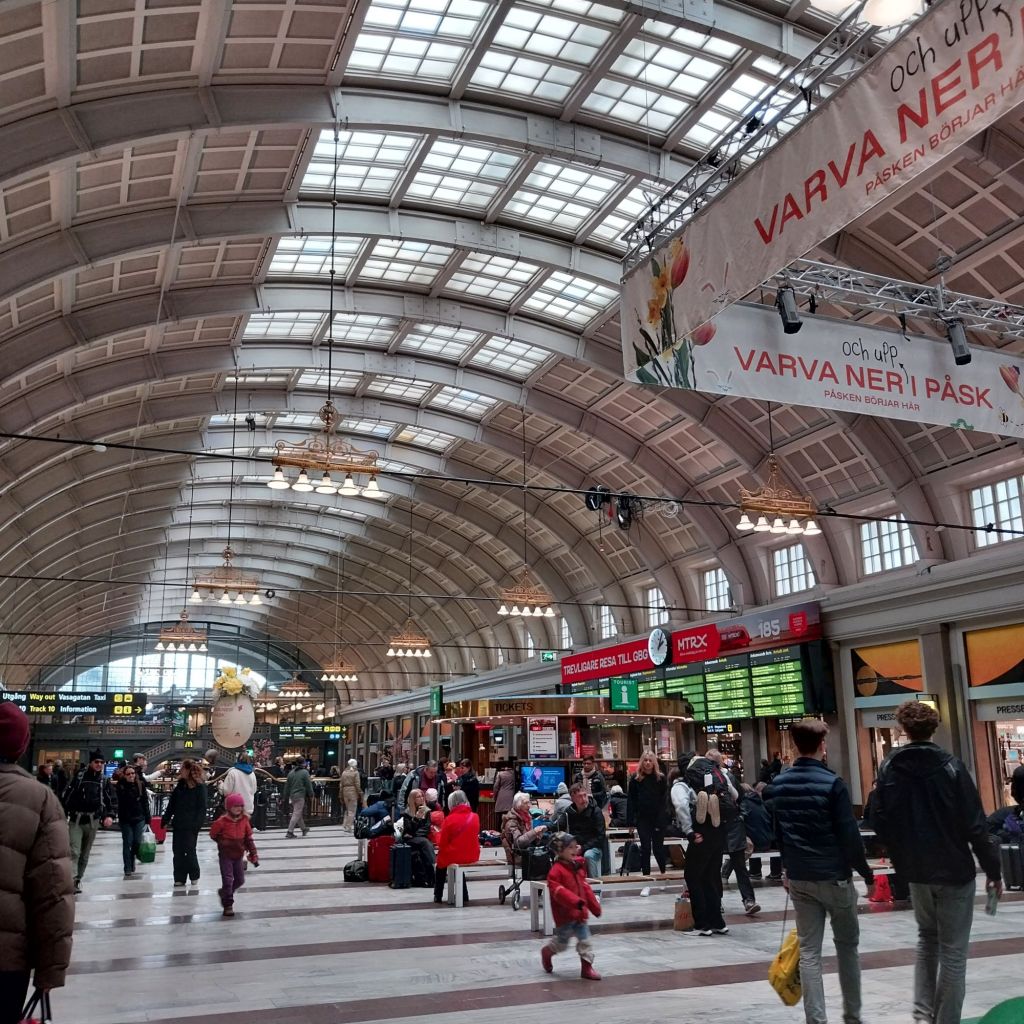 The striking main hall provides some orientation, and my first class rail pass also gives me access to the Swedish Railways lounge. Free food and soft drinks are on offer, though the staff look upon many people arriving with a sense of disdain. I’d come here yesterday to check my train to Oslo was definitely running, only to be turned away and told to go to the Tourist Infoormation counter. They had no idea, and directed me instead to the SJ staff who wander around the hall.