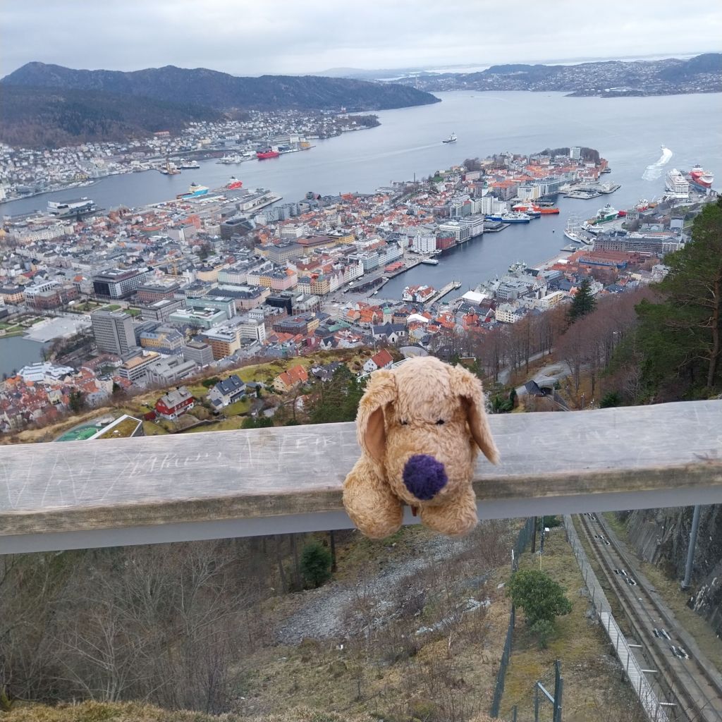 It’s easy to forget when travelling that people live and work in these places, and today’s passengers include a group of children attending a school at the top of Floyen. Once we disembark, I am the only tourist and get the viewing area to myself.