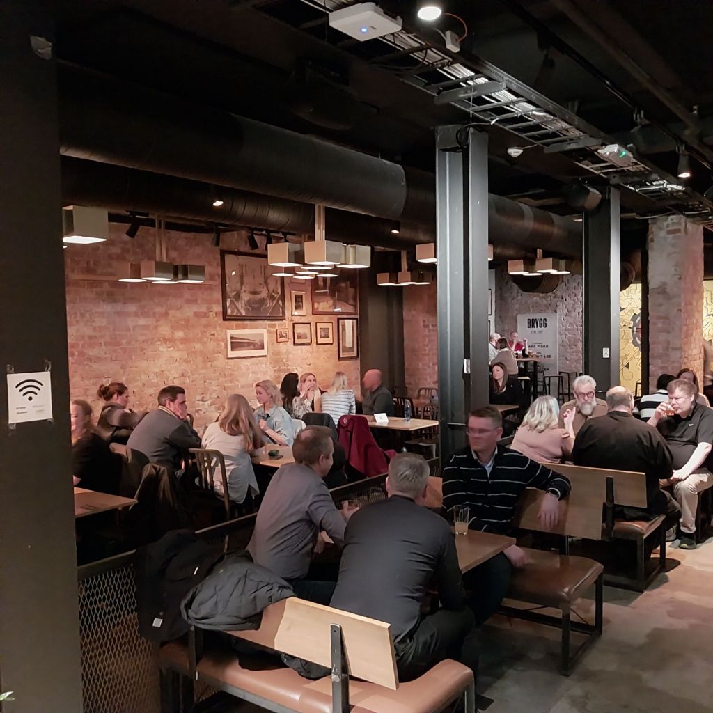 It’s my second and final evening in Oslo so just enough time to sample some more (rather pricey) drinks. As in Bergen it made sense to try and support local breweries and fortunately the number of craft beer bars has increased significantly in recent years. Close to the Cathdral, Brygg is a sprawling beer hall set over two floors. It has an industrial, functional feel to it with two street food kitchens on site. On Friday night it was busywith after work drinkers.