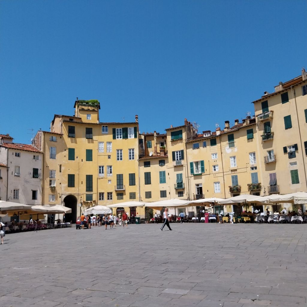 While everyone wants Lucca to be a city preserved in time, it’s sadly moved with the times a bit too much. High street fashion stores jostle side by side with local tourist tat along the man street. Obviously the trade helps bring in funds, which you’d hope would in turn go to keeping Lucca in good shape. By lunchtime, you can barely move for the sight of yet another identikit menu offering “authentic” local cuisine. Although at least in some places – like the Piazza Del Anfiteatro – it’s a little more controlled.