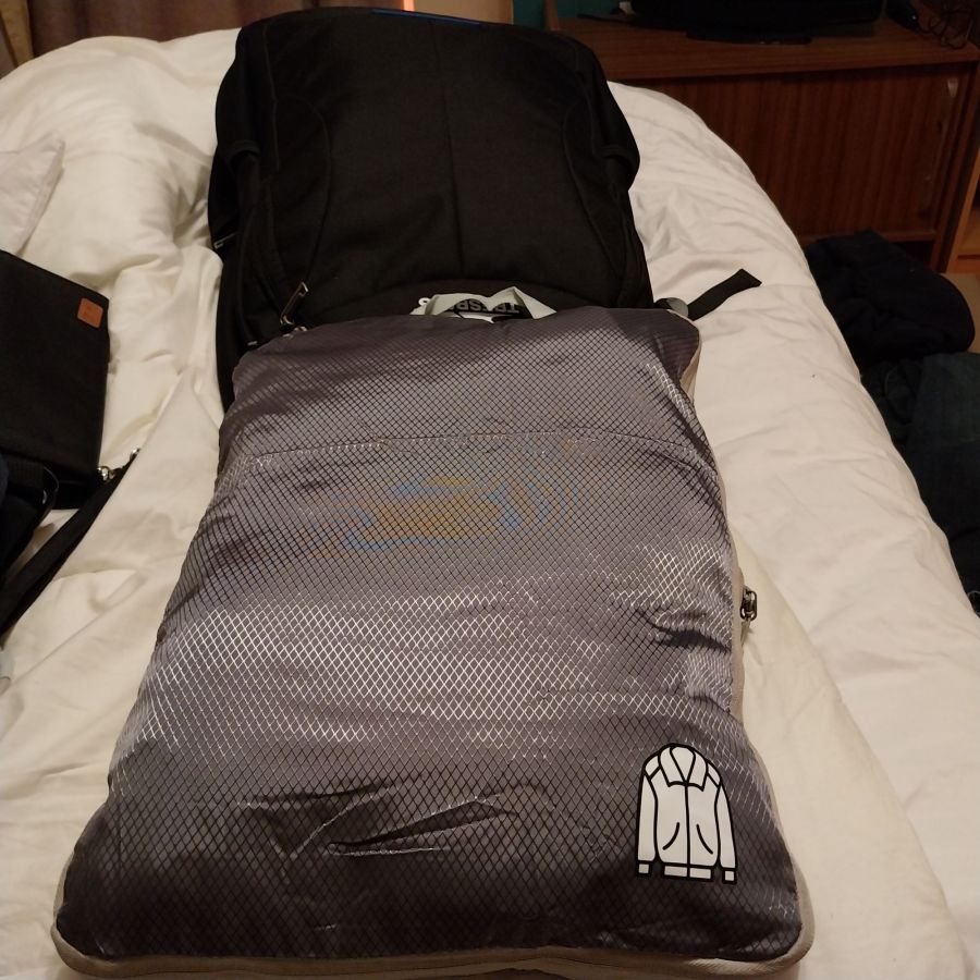 Yes, they have been around for years, but I’d never discovered these neat double zipped pouches that compress your clothes into a small area. More practical than vacuum bags, the cubes not only allow your organise your clothes into their own handy compartments, but also genuinely free up more space. The one in the picture contained three pairs of trousers, three polo shirts and two pairs of shorts. Added to the clothes I was wearing, that would be more than enough daywear for two weeks. The cubes meant I was able to use a compact 39 litre backpack/wheeled case combo for the bulk of my luggage. A second smaller backpack could hold everything else like electronics, cash and a raincoat. Sorted.