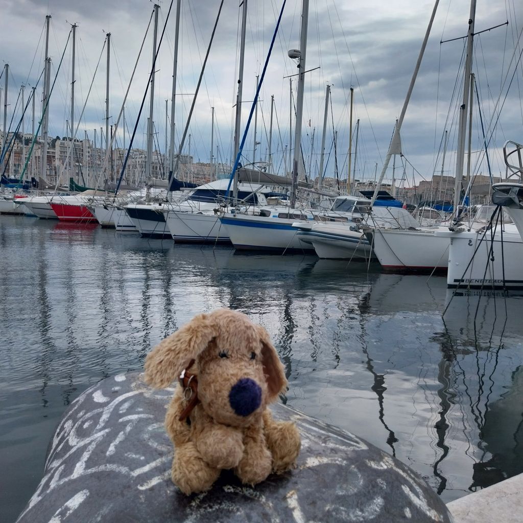 Sunday morning and the wind speed has dropped, giving a pleasant feel to what is officially the first day of Spring. At the Vieux Port, a market is in full swing – offering fresh produce and delicious cooked treats too – everything from croissants and cheese to North African seafood, complete with authetic music by the quayside.