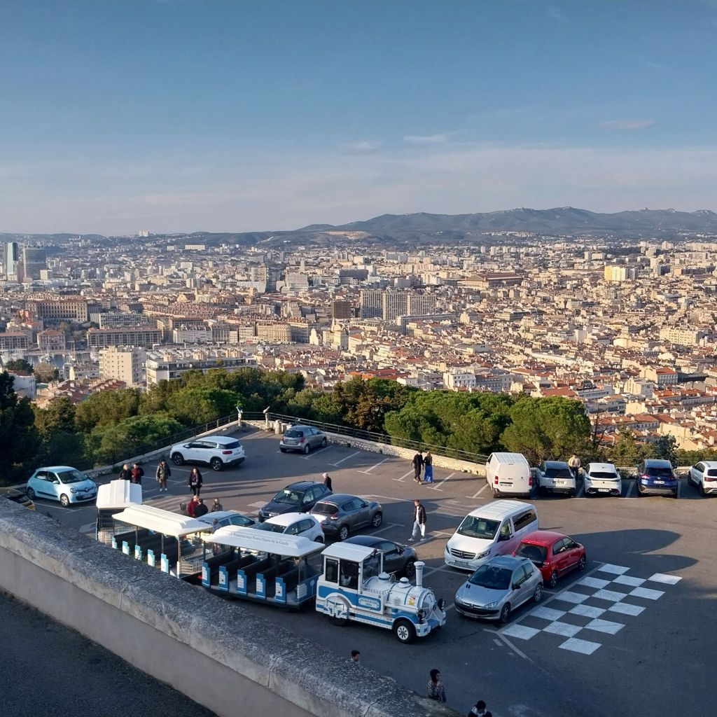 Yes, that is a tacky little tourist train – one of a fleet that ferries people from the Old Port up to the top of the hill. A better way of getting here is by using a local bus – the number 60. A 24 hour pass covering the whole of Marseille’s extensive public transport system is just €5.20.