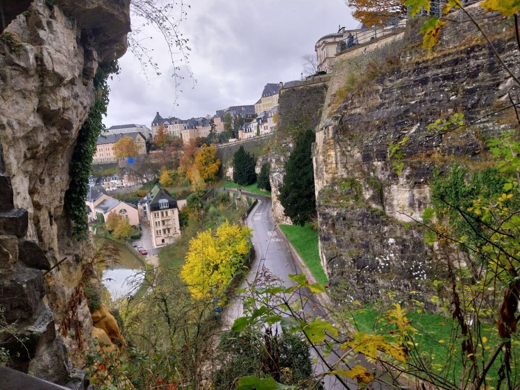 With just an afternoon and an evening to explore, I decide to head to the Bock, the rock on which the original city of Luxembourg was built. En route, the topography becomes quickly apparent. The city centre is essentially built on the top of a hill, with the Rivers Alzette and Petruse forming deep valleys surrounded by steep ravines. The Bock Casemates are tunnels and defences carves into the soft sandstone. Over the centuries they’ve provided important defends for the city; today, they offer stunning views over the ravines.