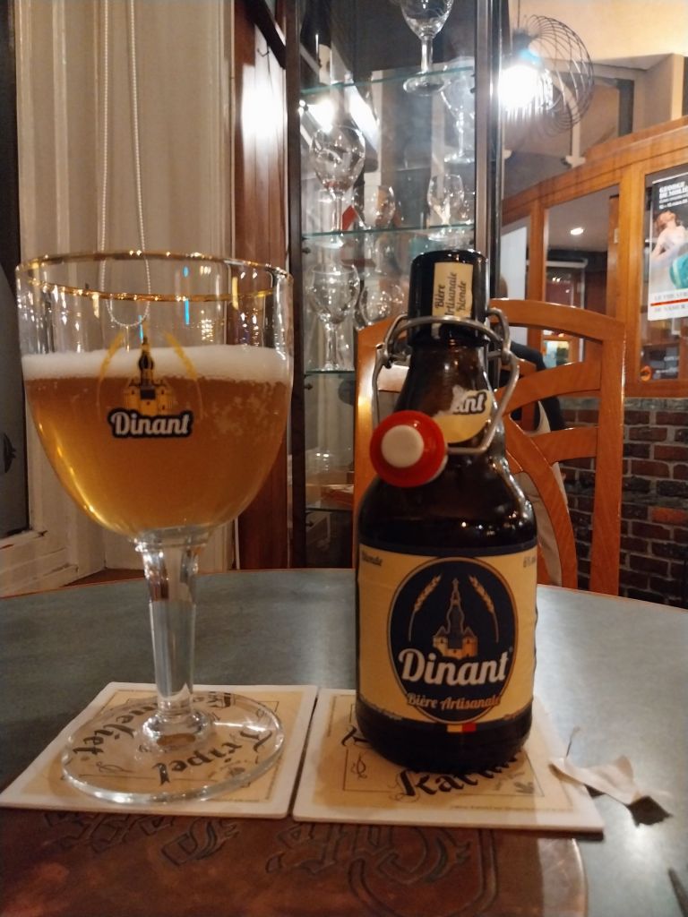 Out of season, Dinant by night has somewhat limited choices. There is a a casino – owned by the Hotel Marveilleuse. But otherwise just a smal handful of bars and restaurants are open at this time of the year. It’s easy to imagine how different it would be in the summe, with hoards lining the riverfront and taking a trip on the boats – currently parked up for the winter. I settle for another beer – this time at the touristy themed Cafe Leffe. Well, when in Dinant… (drink the opposition’s beer)