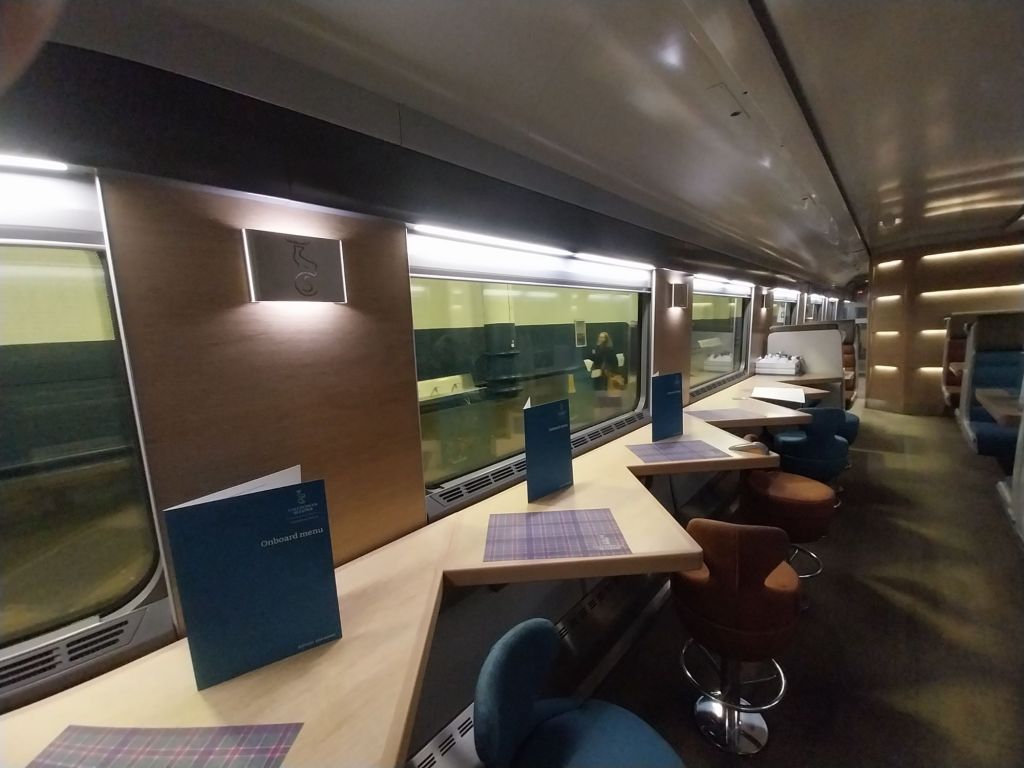 The Club car is helpfully open until 1am – though it’s worth noting that priority is given to passengers in the Club level rooms. If you’re in the basic car, you can order items from the menu which are brought to your seat. And – given that this is a 16 car train that splits at Edinburgh, there are actually two Club Cars – though you’ll only ever be able to access one.