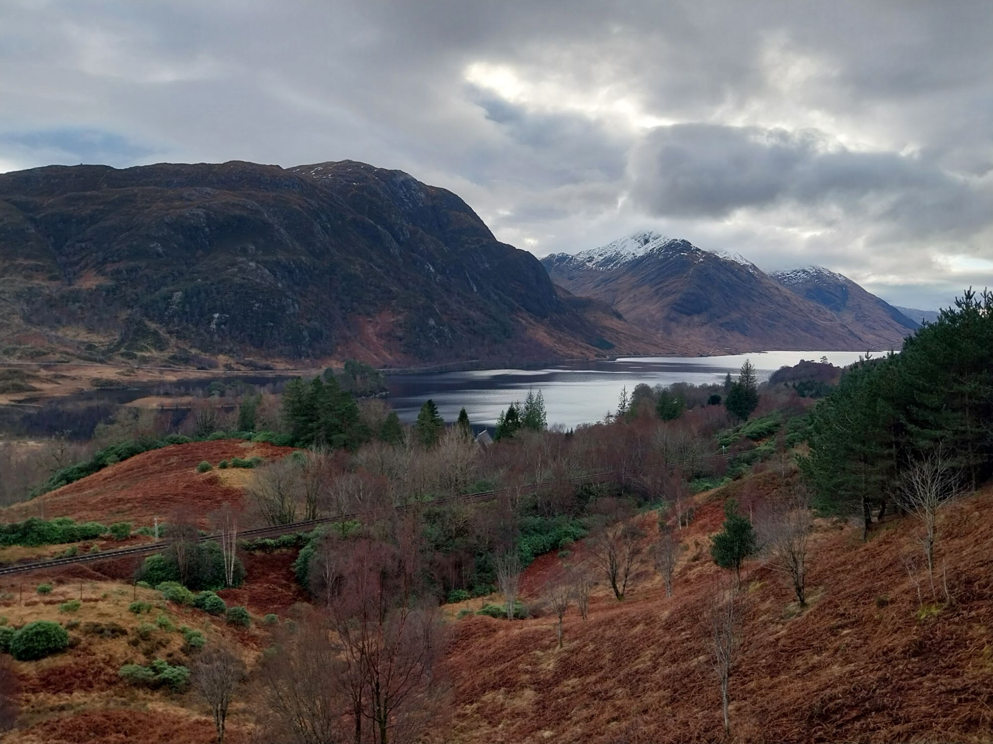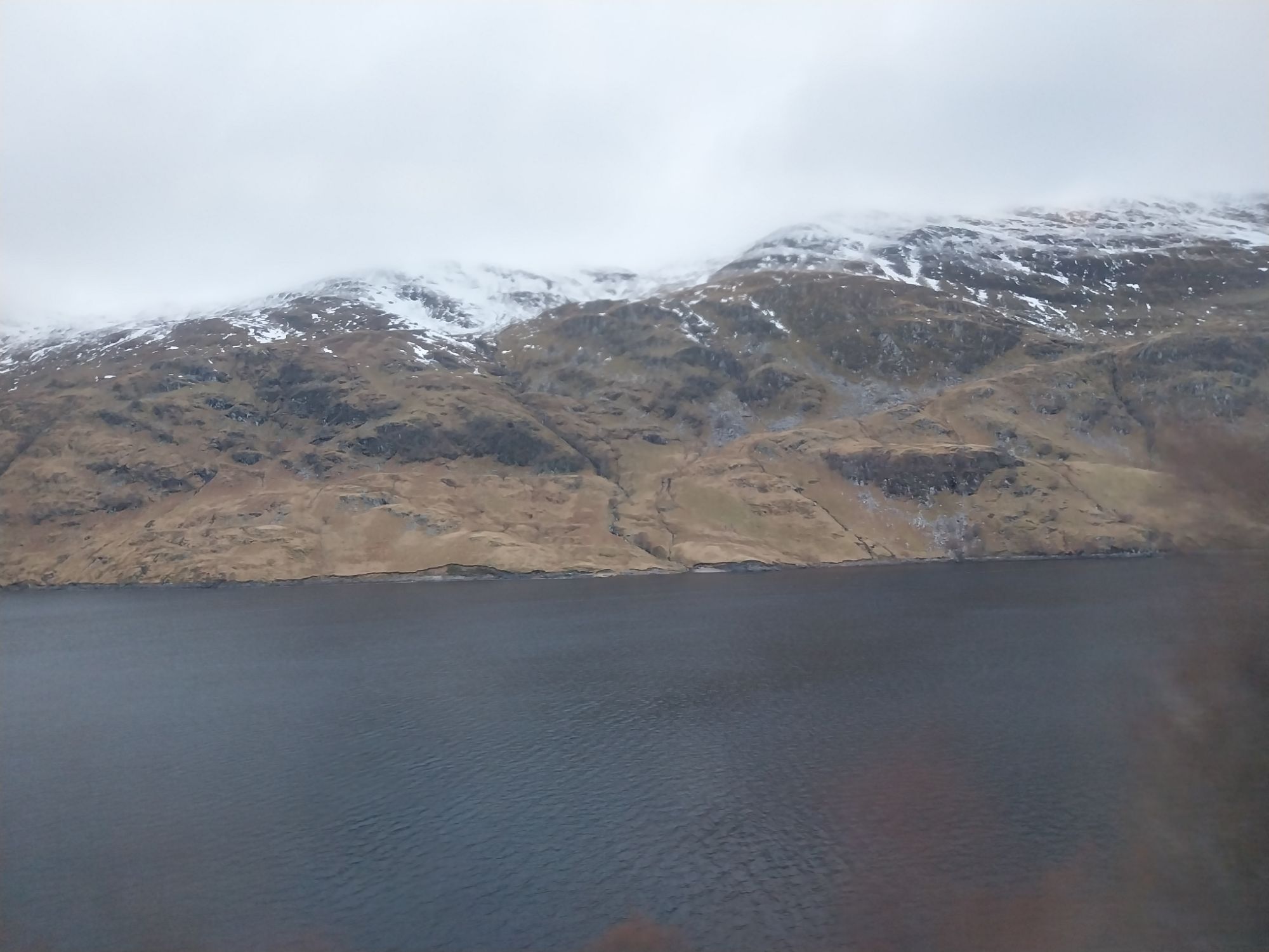 The line climbs steadily to Corrour Station – Britain’s highest, at 408 metres above sea level. We’re now deep in the middle of Rannoch Moor, a desolate but beautiful wilderness. The station is only accessible by train or a twenty mile hike, and in recent years has become home to a remote B&B and restaurant. From the train, enormous views open our of mountains, moorlands, streams and lochs. This is the Highlands you’ve come to see, and it doesn’t disappoint.