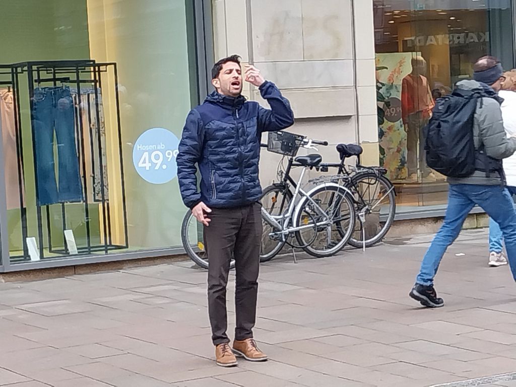 On a Saturday morning, Bremen is a cacophony of sound. In the Market Place, a protest with Palestinian flags on show. The cathedral bells are ringing out. And on one of the main shopping streets, punctuated by passing trams, are a man and a woman performing operatic classics. Here, he’s belting out Nessun Dorma. And very impressive it is too.
