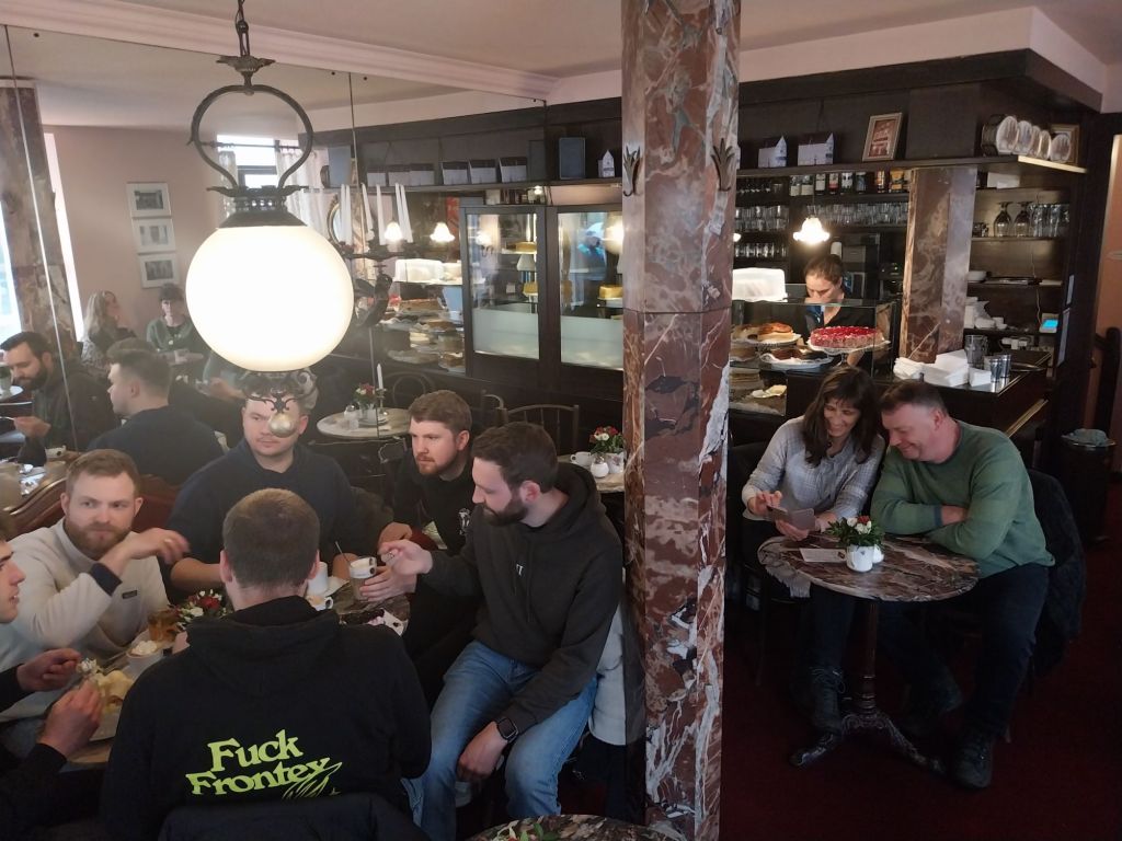 Cafe Tolke, a cosy coffee shop, is enjoying a busy day on a wet Saturday lunchtime – you wouldn’t know it by this exterior photo, as the staff politely explain that “the outside is not for the rain”. Fortunately I’ve got a seat inside, just next to a group of young men with hilariously offensive jackets.