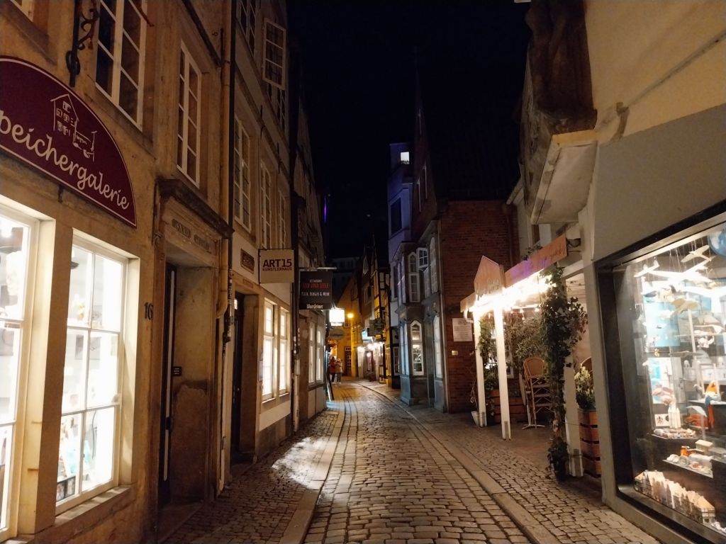 Bremen may not be on the list of must see places that many visitors choose when they come to Germany; but it should be. The city has a real charm about it, centuries of history and a great nightlife. As I walk back through the Schnoor a local guide is leading a night time walk. The place looks beautifully deserted.
