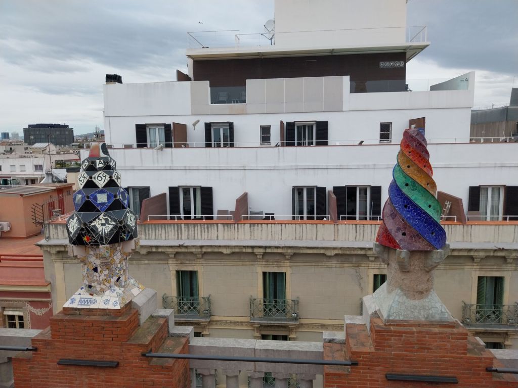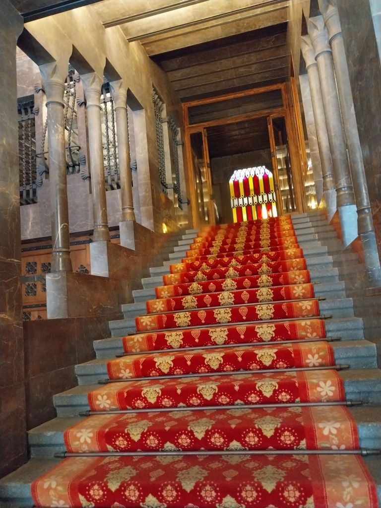 The Pala Guell was home to Eusebi Guell, a wealthy businessman who commissioned Antoni Gaudi to design it. In the end, it was the only residential building completed by the great artist. The inside is filled with lavish ornamental features, inlcuding a huge imposing staircase, and rooftop sculptures that may remind UK readers of a certain age of the tv-AM building in London.