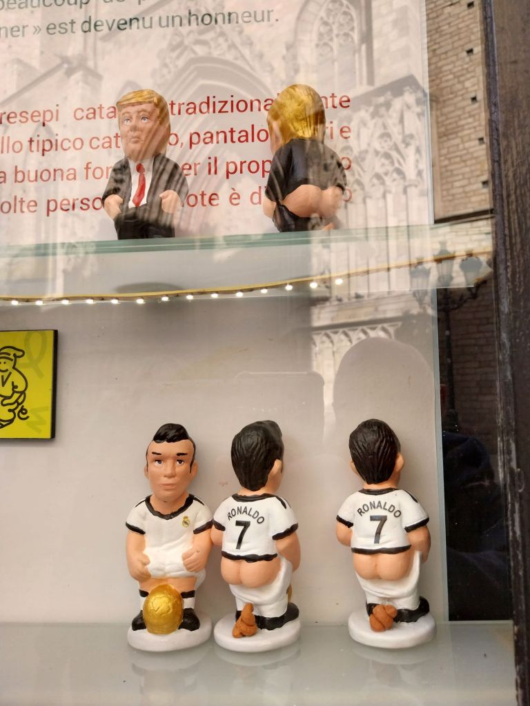 A nearby tour guide tells her visitors that the Caganer makers are waiting for a lawsuit from Donald Trump, which will probably only make them more famous.