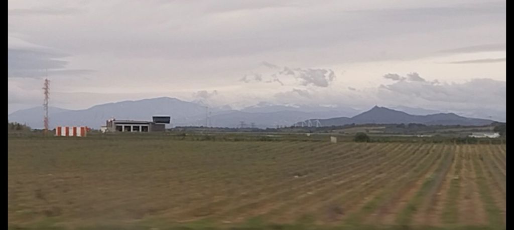 On the border and across into Spain, the line races through more greenery, punctuated by Pyrenees to the west. It’s a fantastic way to arrive in a country.